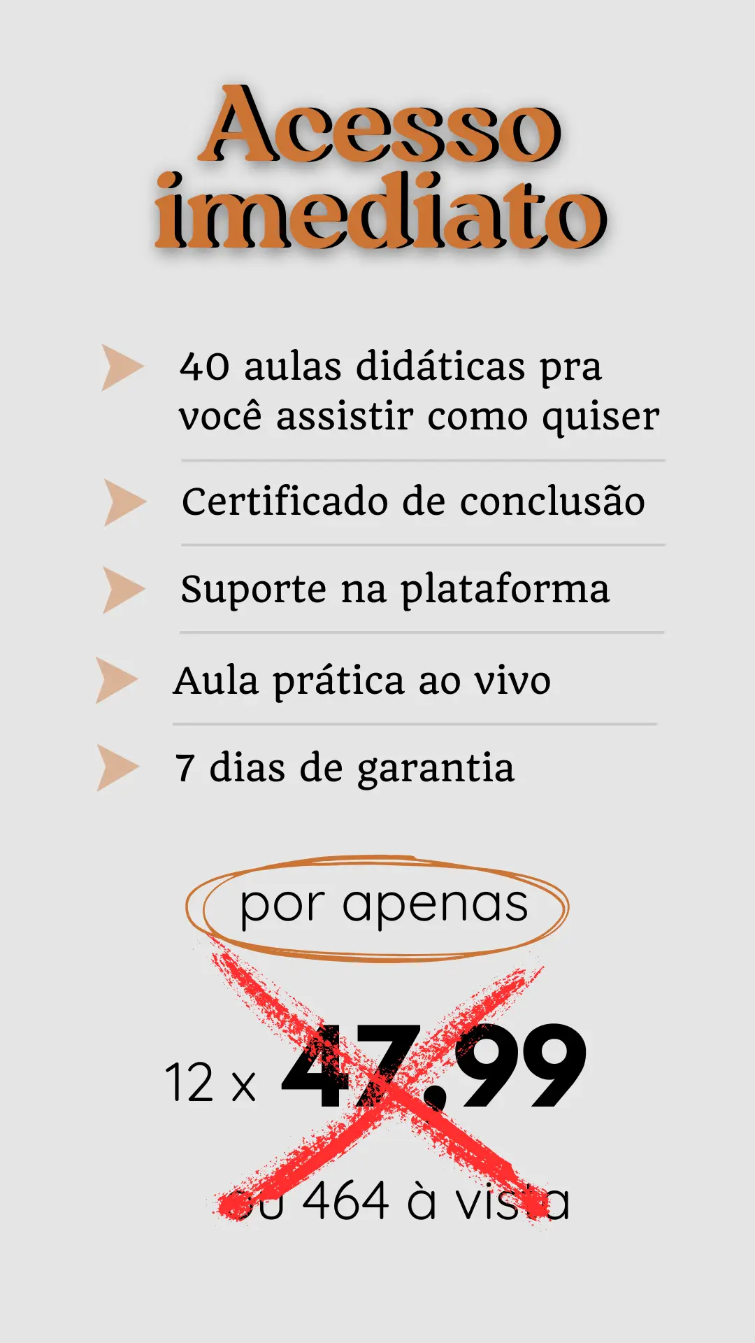 Se ao longo de 7 dias você perceber que esse curso não é pra você, não tem problema, entre em contato e receba seu dinheiro de volta!